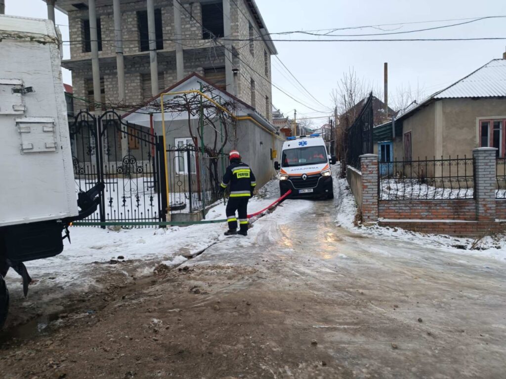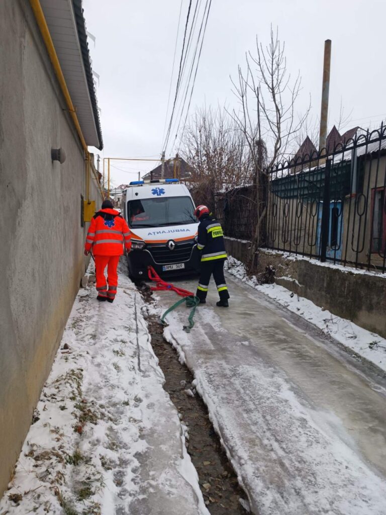 La Soroca, o altă ambulanță a derapat de pe traseu din cauza poleiului și a fost necesară intervenția pentru deblocarea acesteia, astfel încât să-și poată continua deplasarea către solicitare.