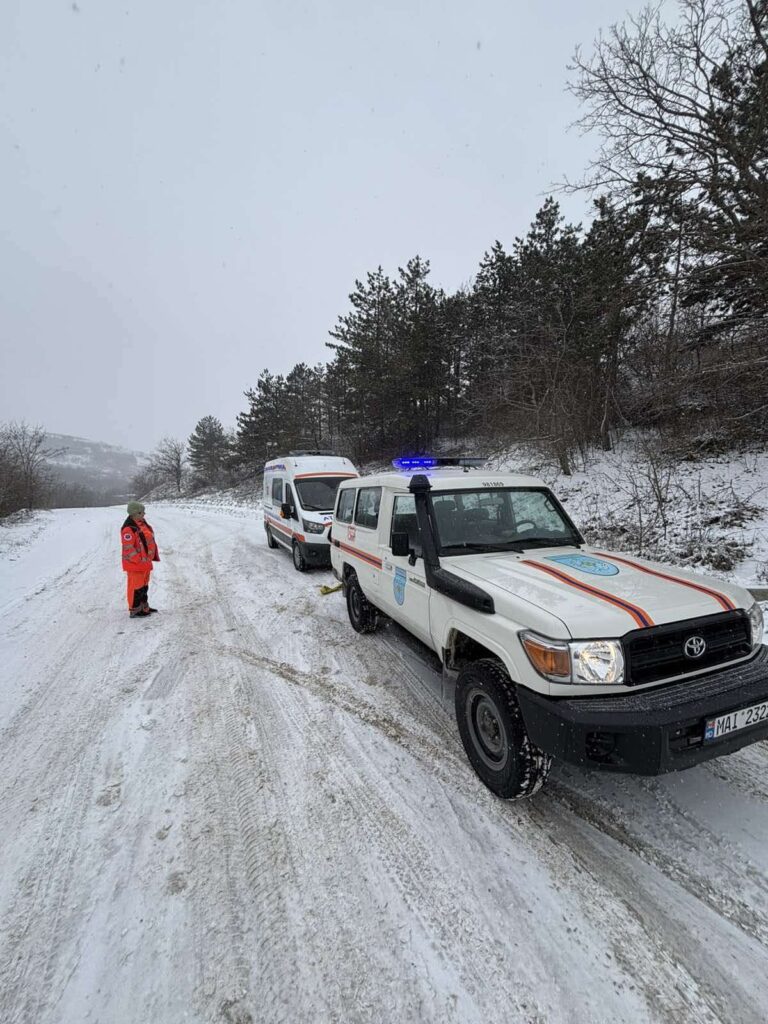 În Pogănești, raionul Hâncești, medicii au fost preluați de angajații IGSU și transportați până la persoana care avea nevoie de ajutor, fiind ulterior conduși în siguranță înapoi la ambulanță.