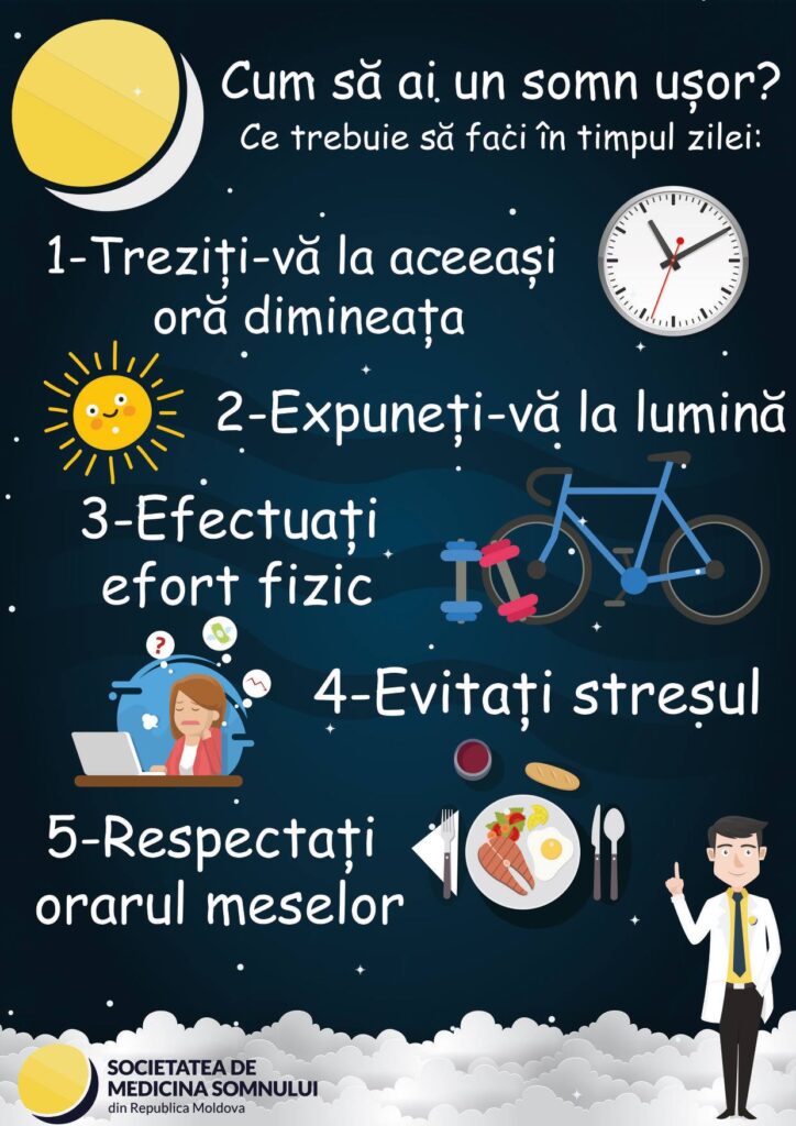 Specialiștii în somnologie, dar și cei din medicina integrativă și preventivă recomandă menținerea unei ore fixe de trezire, expunerea la lumină naturală dimineața, activitate fizică regulată, reducerea stresului și respectarea unui program adecvat al meselor. De asemenea, pot fi utile băile relaxante cu săruri de magneziu, tehnicile de respirație sau meditația înainte de culcare. Ora ideală de culcare nu ar trebui să depășească 22:30.