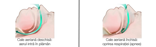 În mod normal, aerul pătrunde în organism prin nas, trece de palatul moale și de limbă, ajunge în laringe, apoi în trahee și plămâni. Nivelul normal de oxigen din sânge se situează între 95% și 98%. La persoanele cu apnee, limba și palatul moale se relaxează excesiv în timpul somnului, îngustând căile respiratorii și generând sforăitul. În somnul profund, limba poate obstrucționa complet căile aeriene, iar nivelul oxigenului scade progresiv. Creierul reacționează printr-un semnal de alarmă, persoana se trezește brusc, își recapătă tonusul muscular, inspiră adânc, iar respirația revine la normal. Acest ciclu se poate repeta de mai multe ori în fiecare oră.
